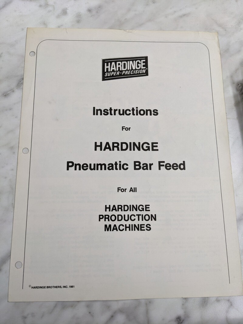 Hardinge Instruction Manual Pneumatic Bar Feed All Production Machines 1981
