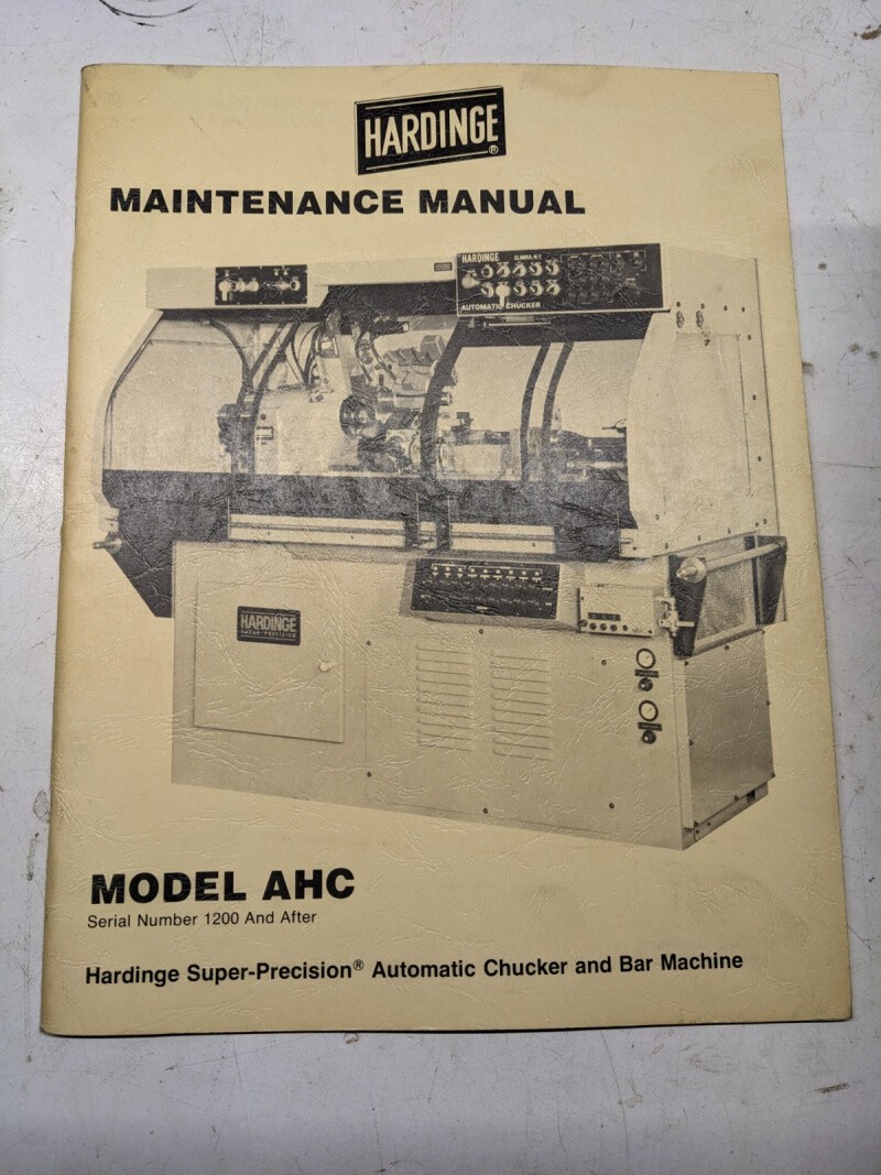 Hardinge Maintenance Manual Model Ahc 1200 Chucker Bar Machine Shop Book