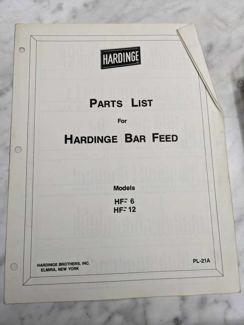 Hardinge Service Parts List Book Manual Bar Feed Models Hf-6 Hf-12 Pl-21A Tool