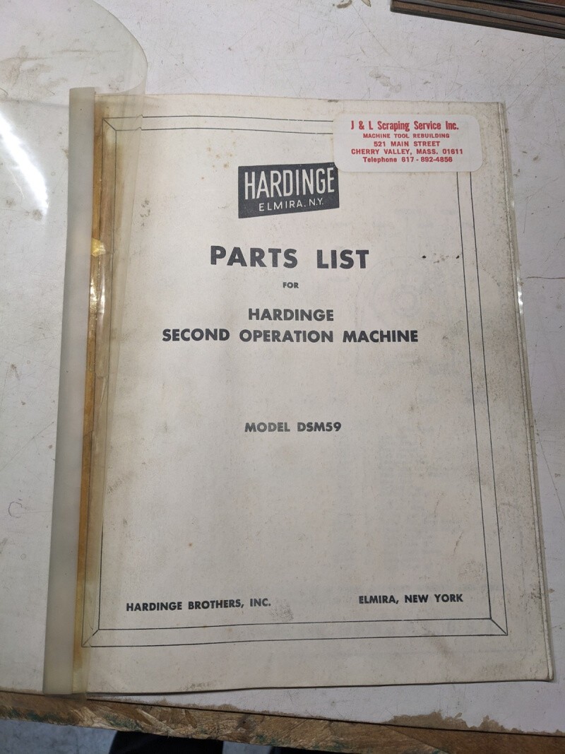 Hardinge Service Parts List Book Manual Catalog 2Nd Operation Machines Dsm59