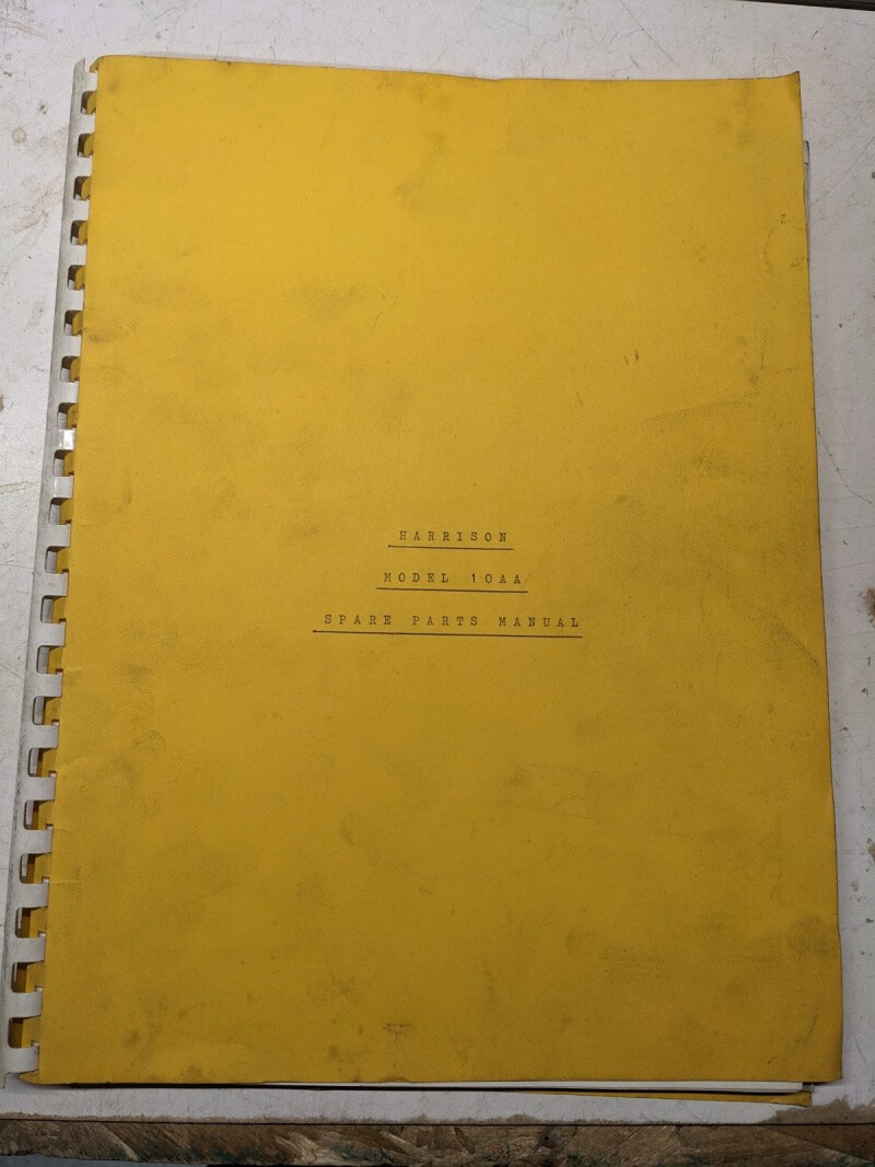 Harrison Model 10-Aa Spare Service Part List Book Catalog Manual Precision Lathe