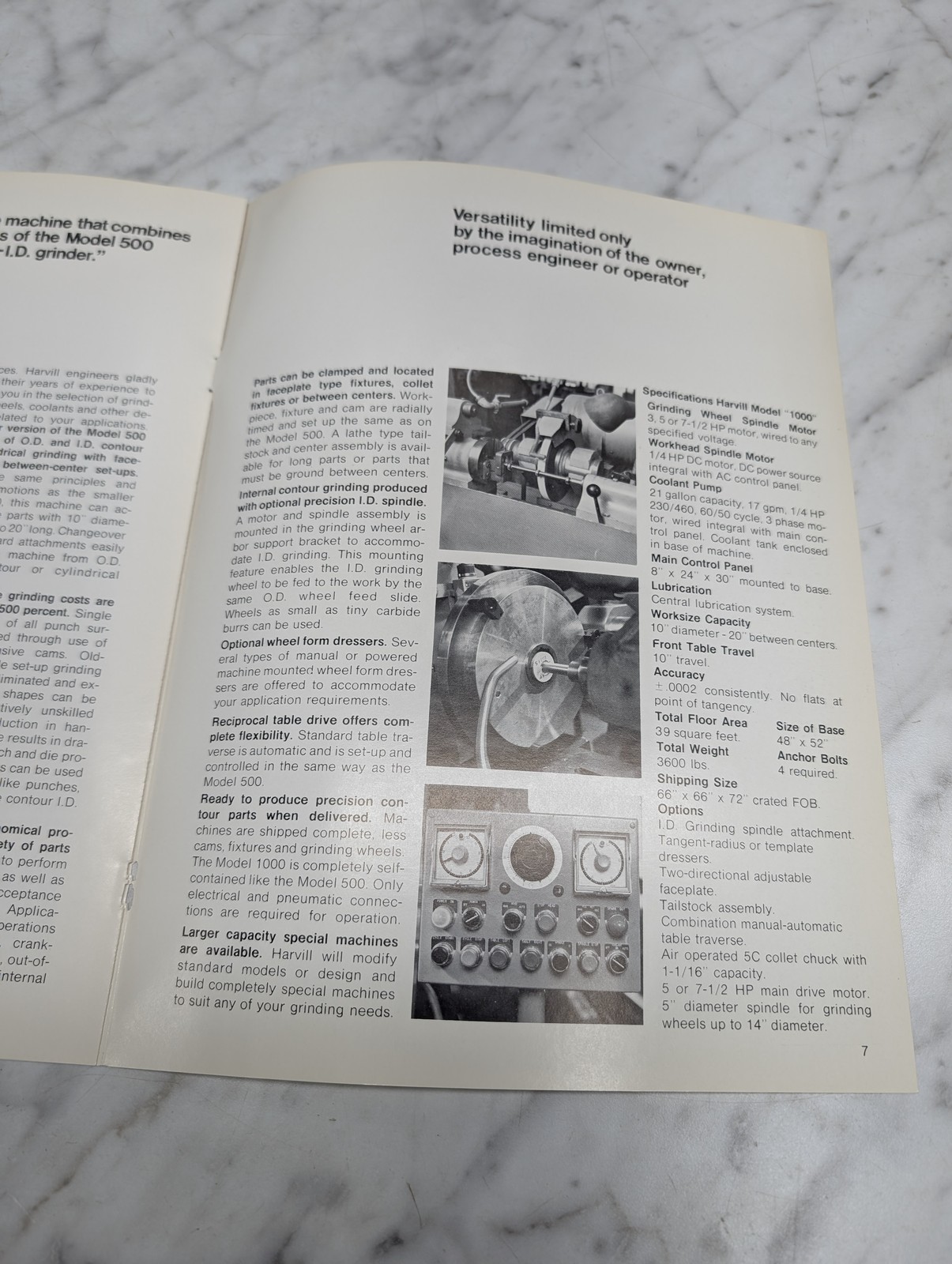 Harvill Model 500 1000 Contour Grinding Machines Sales Brochure Literature