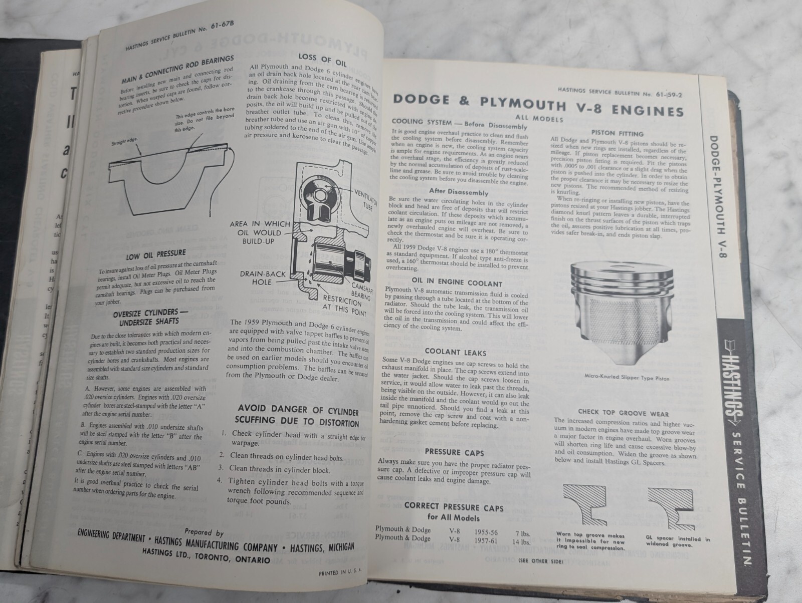 Hastings Service Bulletins Shop Manual 1957-1965 Automotive Mechanics