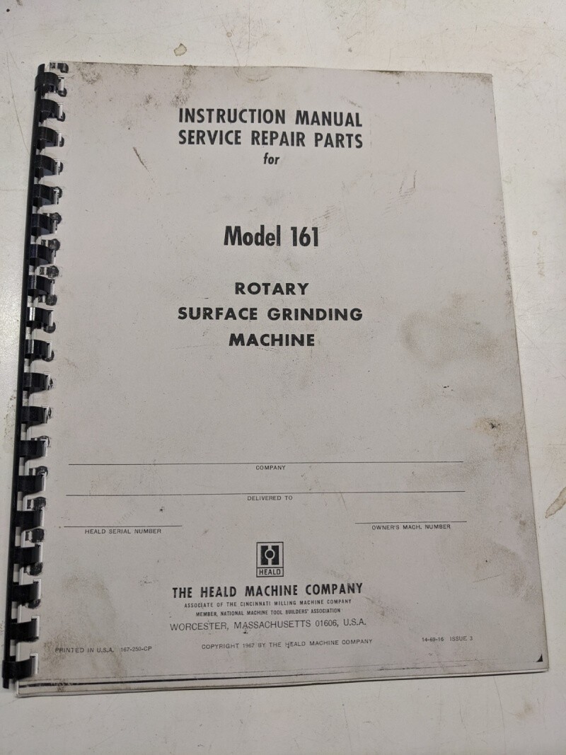 Heald Instruction Manual Service Repair Parts List Model 161 Rotary Grinding