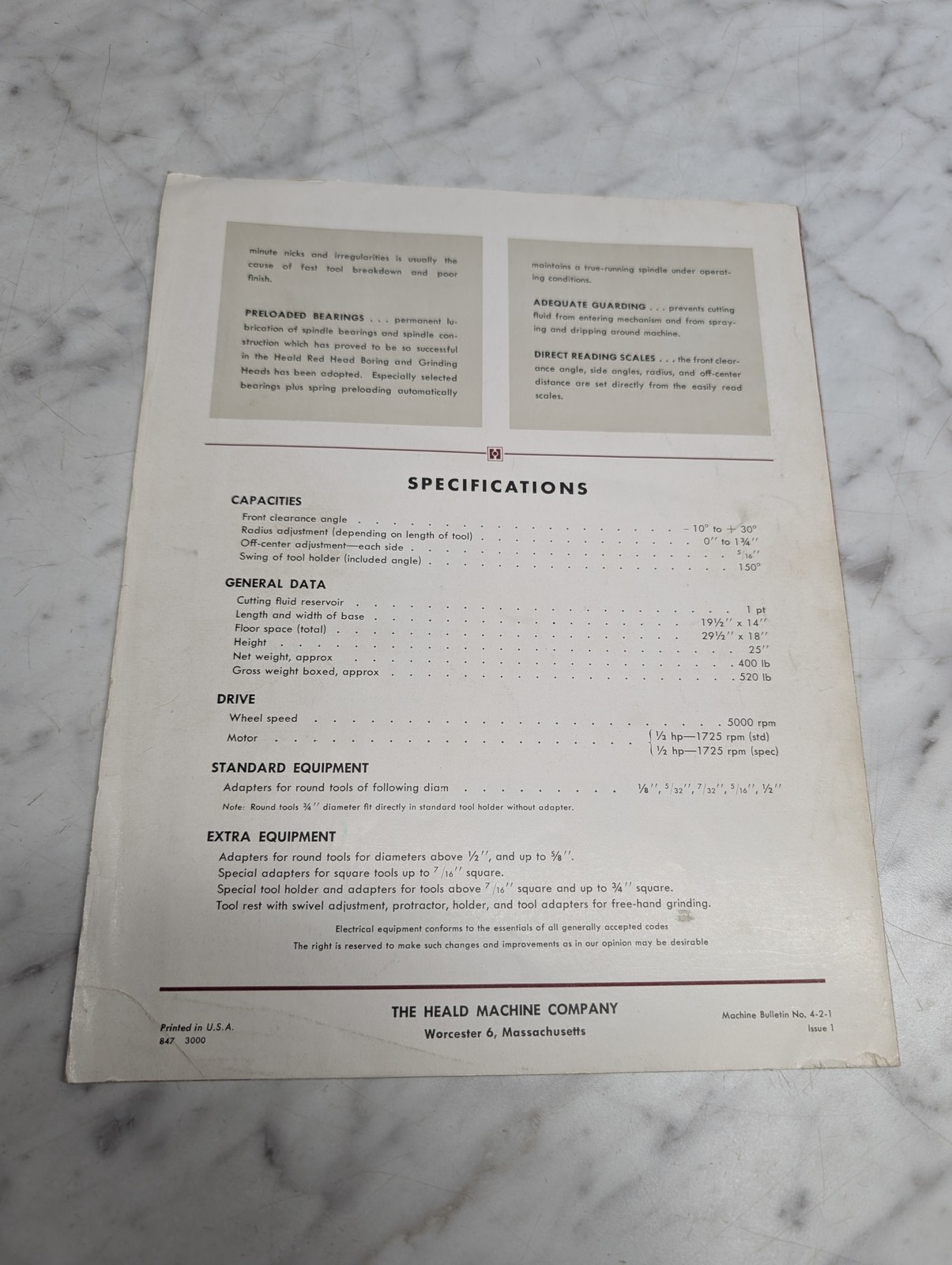 Heald Model 2 Tool Sharpening Machine Sales Brochure Literature