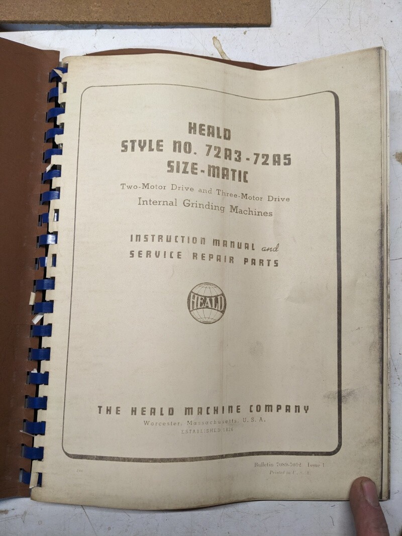 Heald Operator Service Manual Parts List Book Model 72A3-72A5 Size-Matic Copy