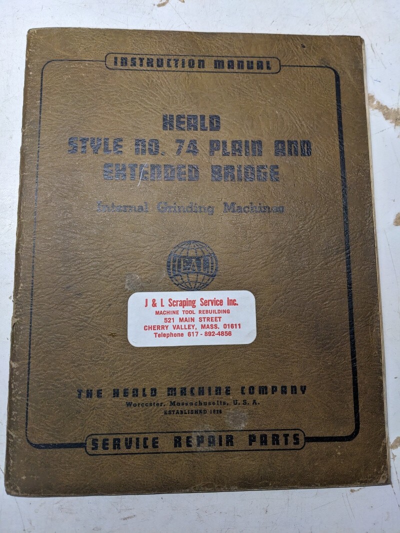 Heald Operator Service Manual Parts List Catalog Model 74 Grinding Machine