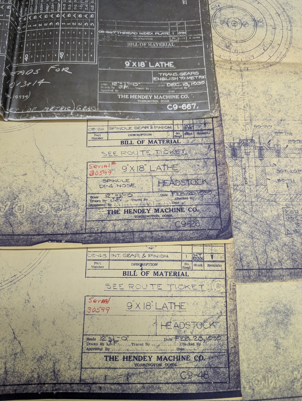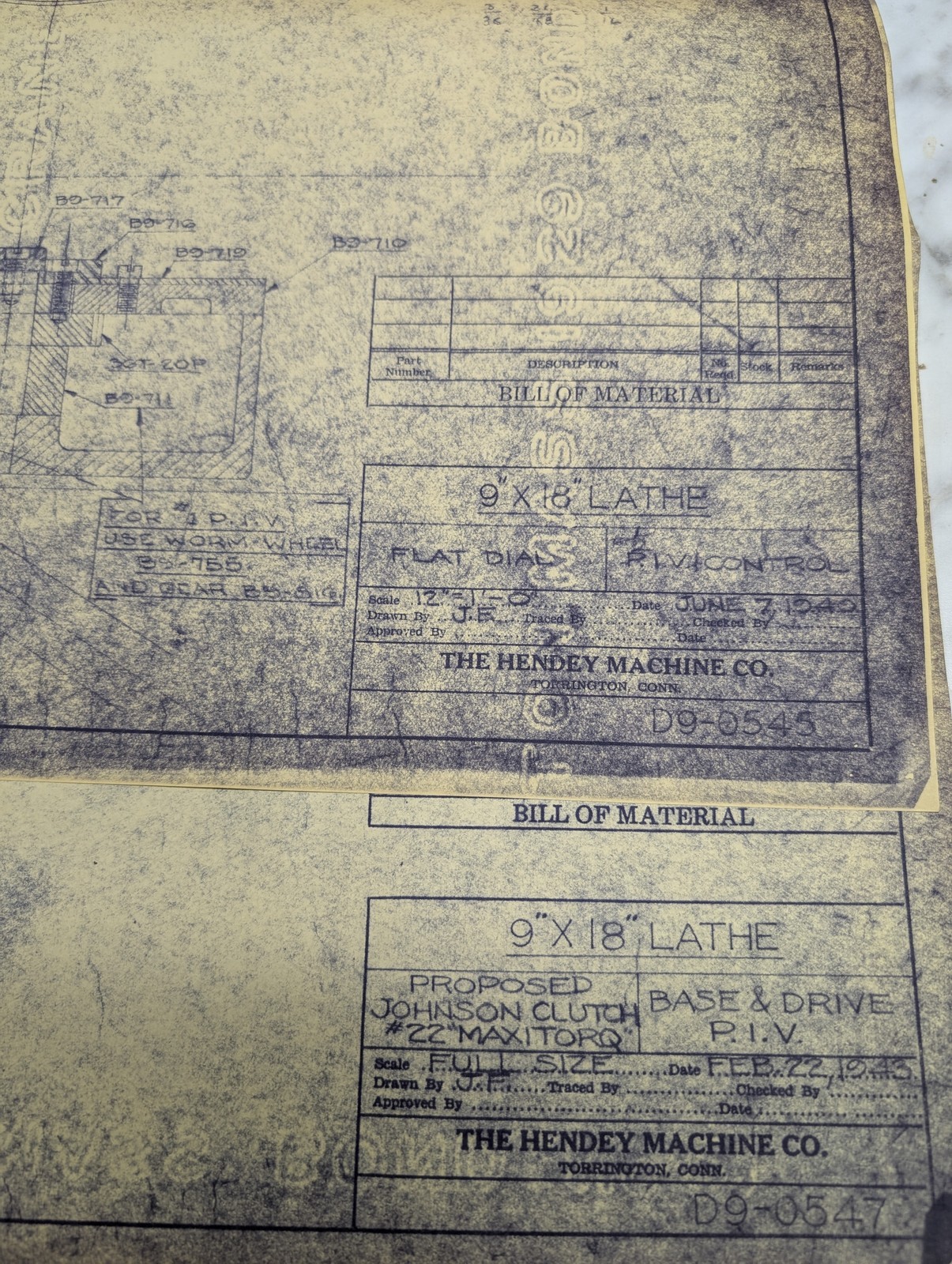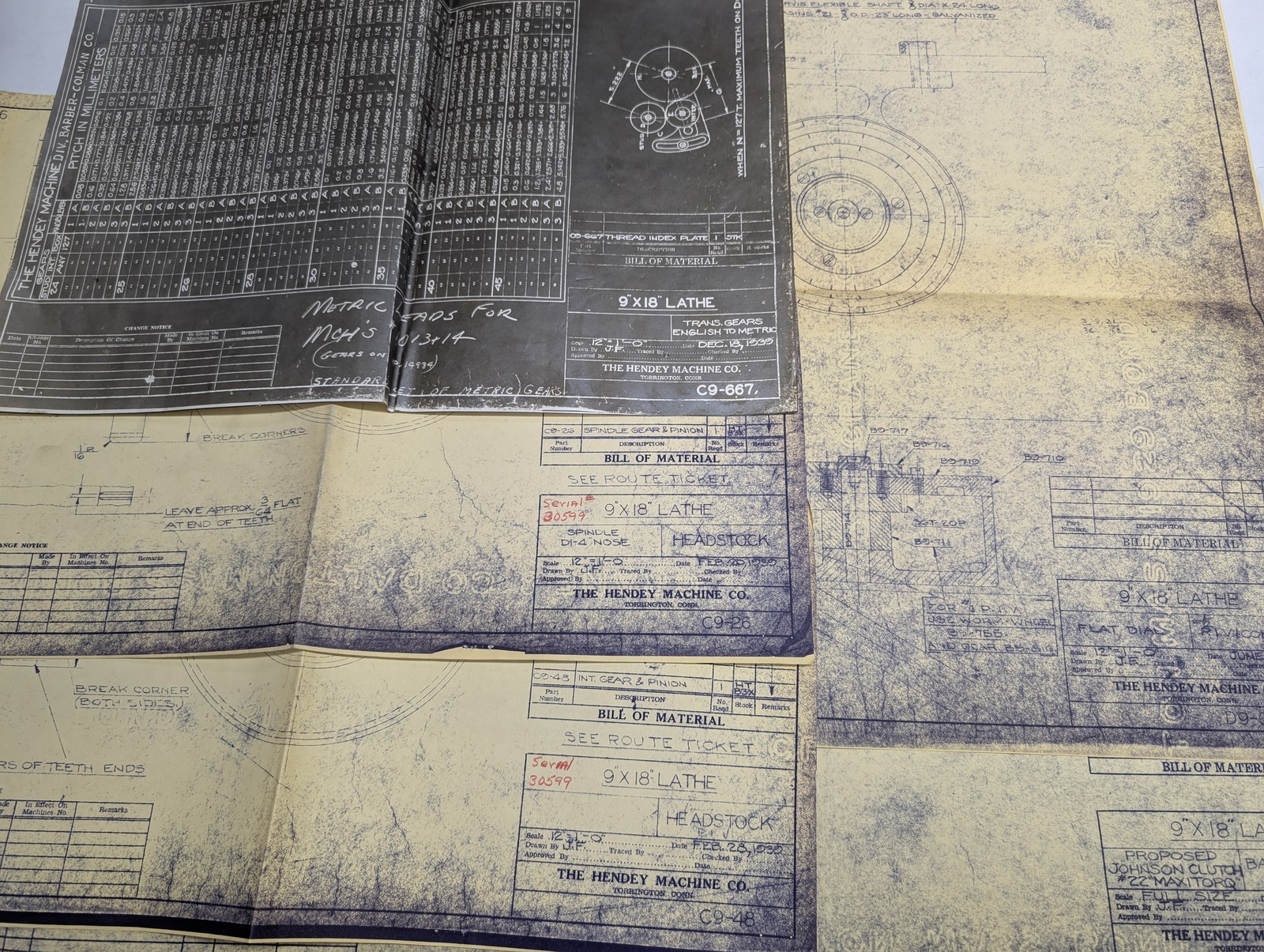 Hendey Machine Tool Lathe 9X18 Diagrams Drawings Blue Prints Information