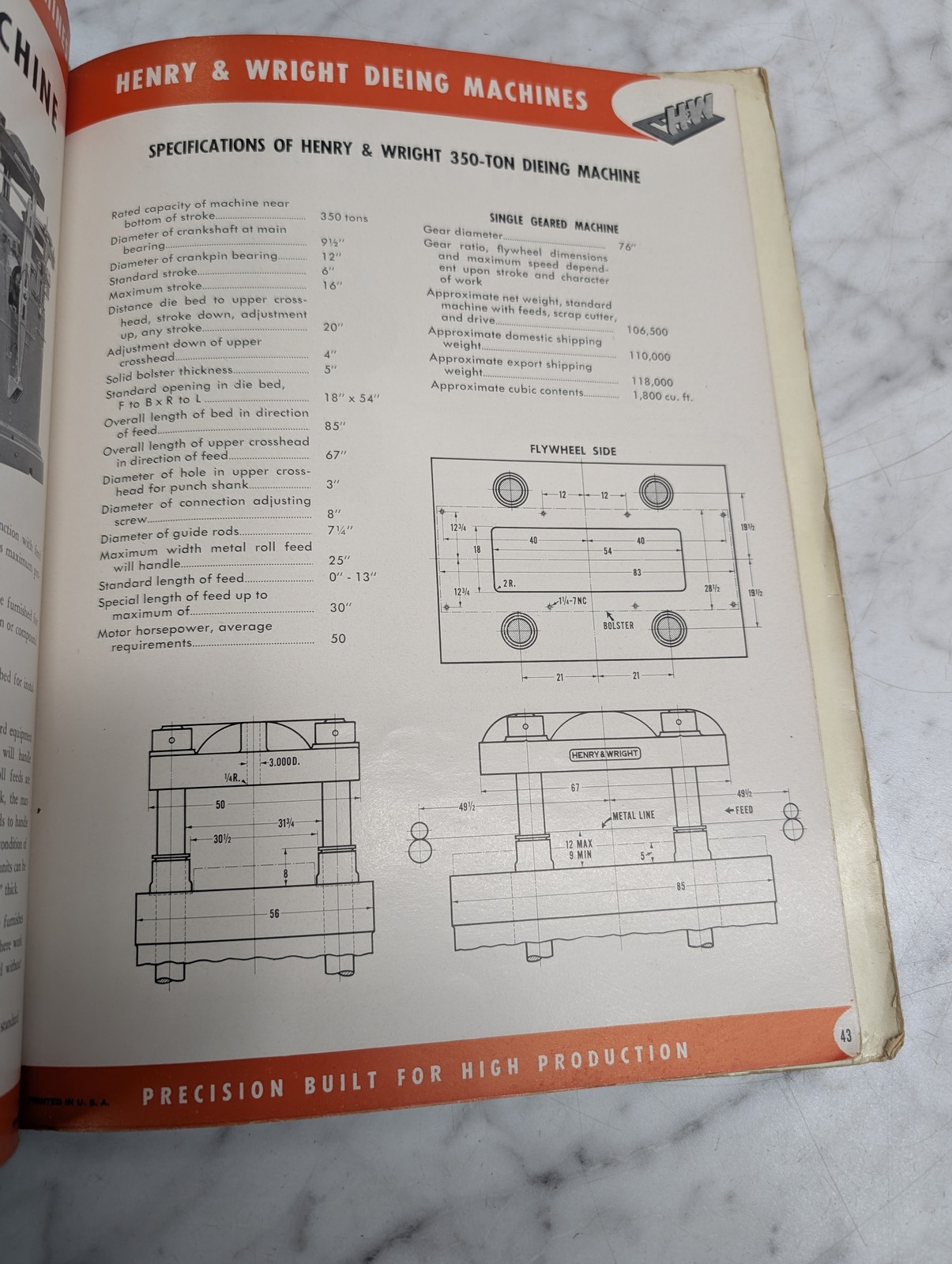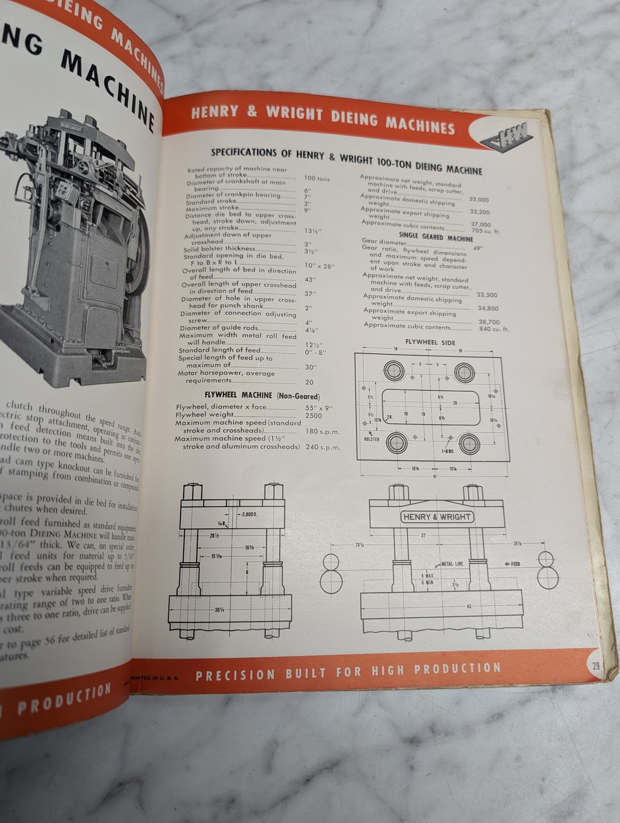 Henry Wright Dieing Machines Catalog 53 Literature Specs Features Info Buyers