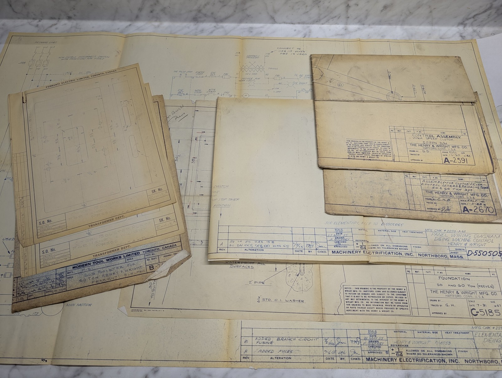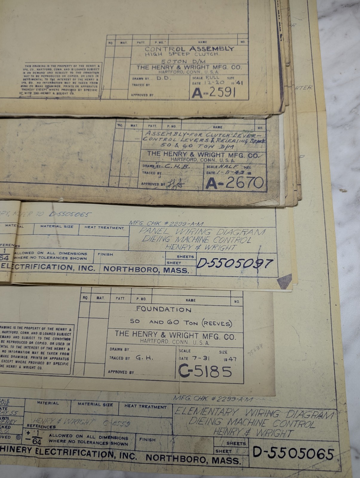 Henry Wright Mfg Machine Tool 50 60 Ton D/M Reeves Drawings Prints Diagram