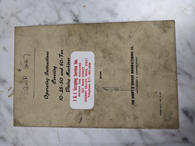 Henry Wright Operator Instruction Manual 10 14 50 60 Ton Die Machines Press 1945