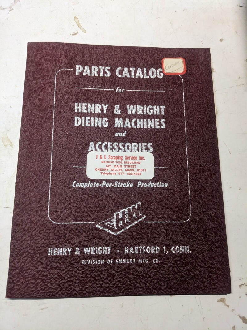 Henry Wright Service Parts List Book Catalog Dieing Machines & Accessories P-52
