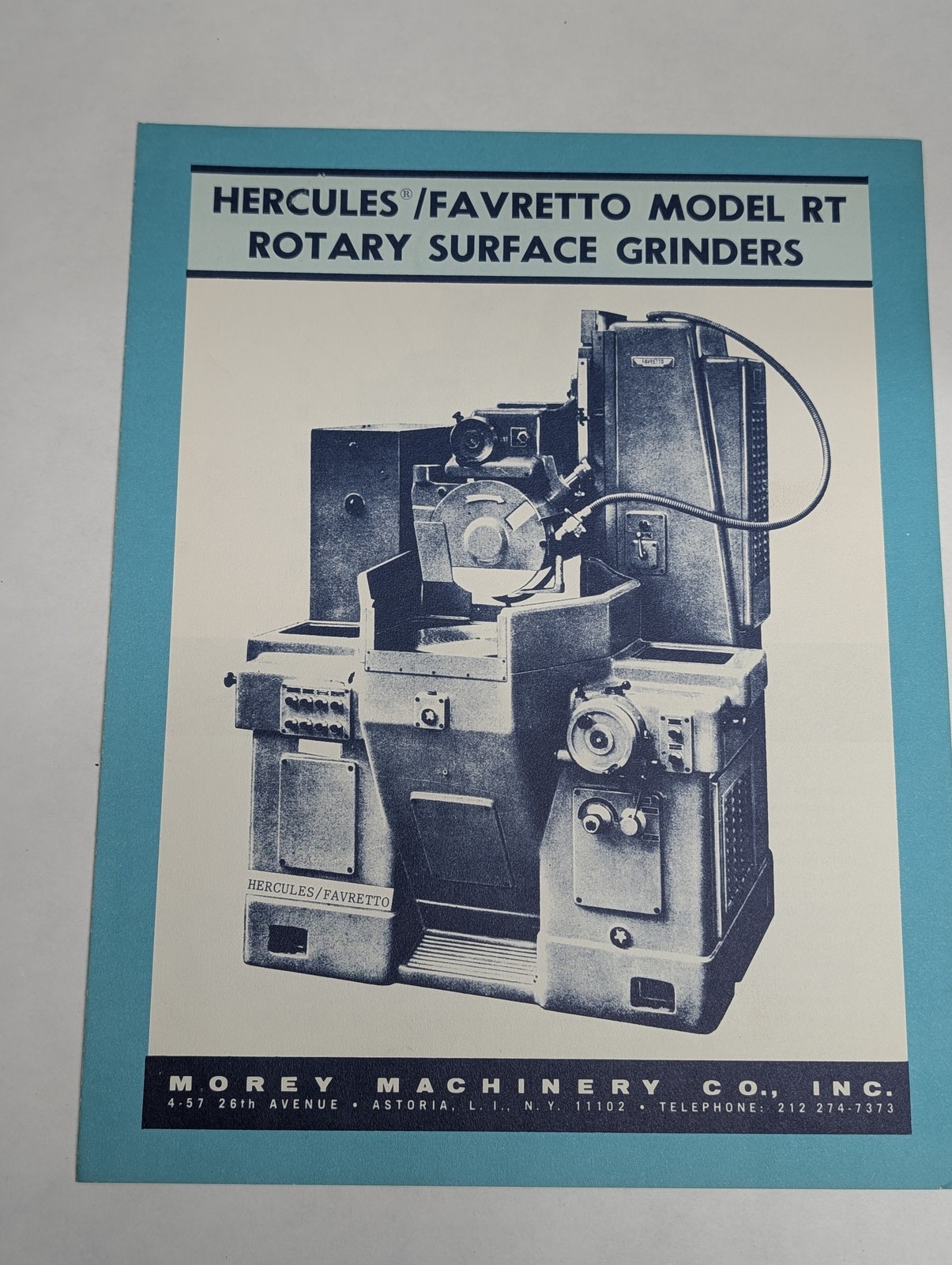 Hercules Favretto Model Rt Rotary Surface Grinders Morey Machine Sales Brochure