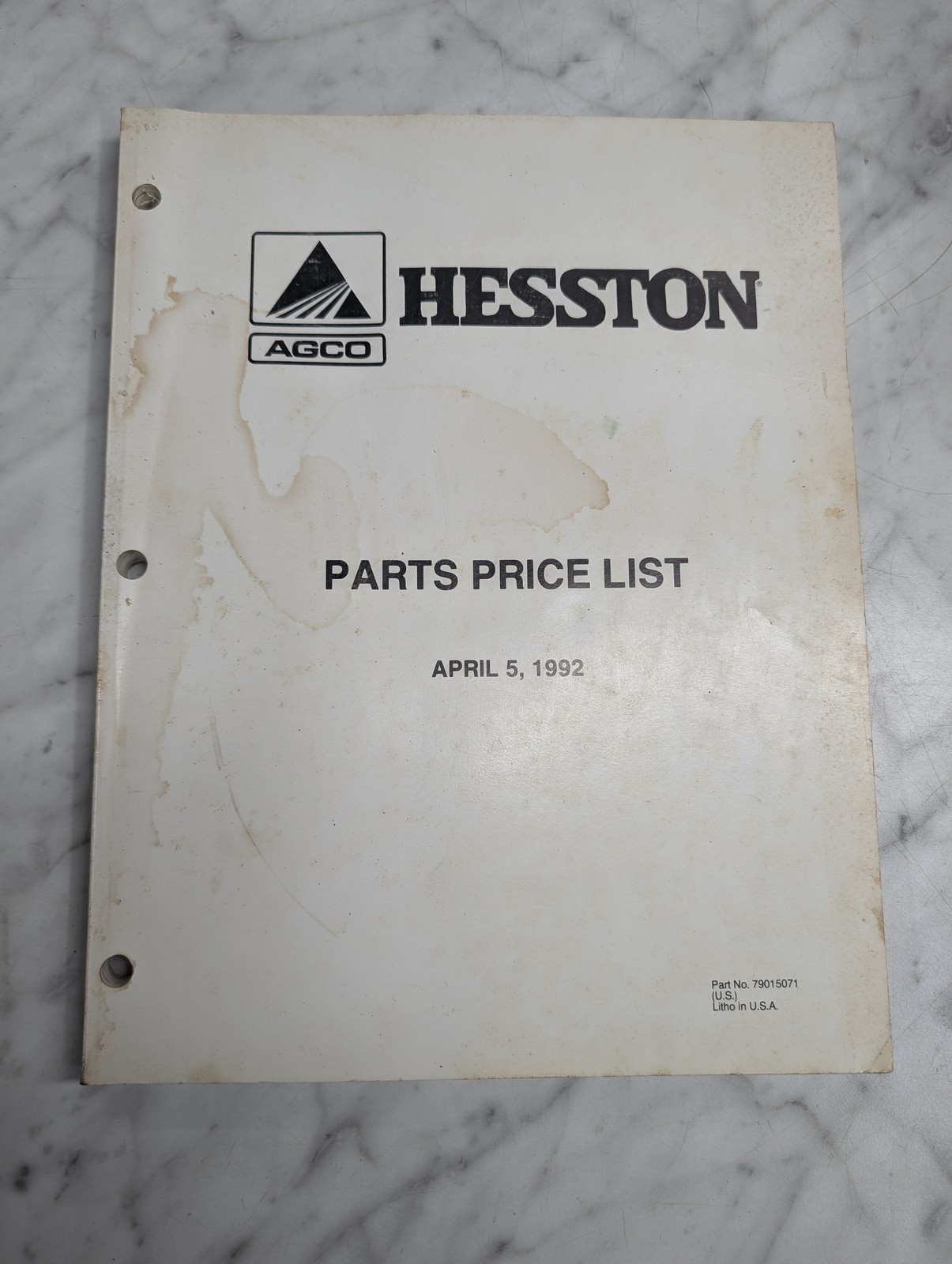 Hesston Agco Parts Price List Manual April 5 1992 Book Sales Catalog Reference