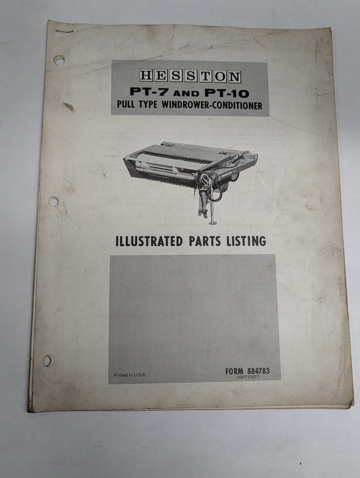 Hesston Pull Type Windrower Conditioner Pt-7 & 10 Parts List Manual Catalog