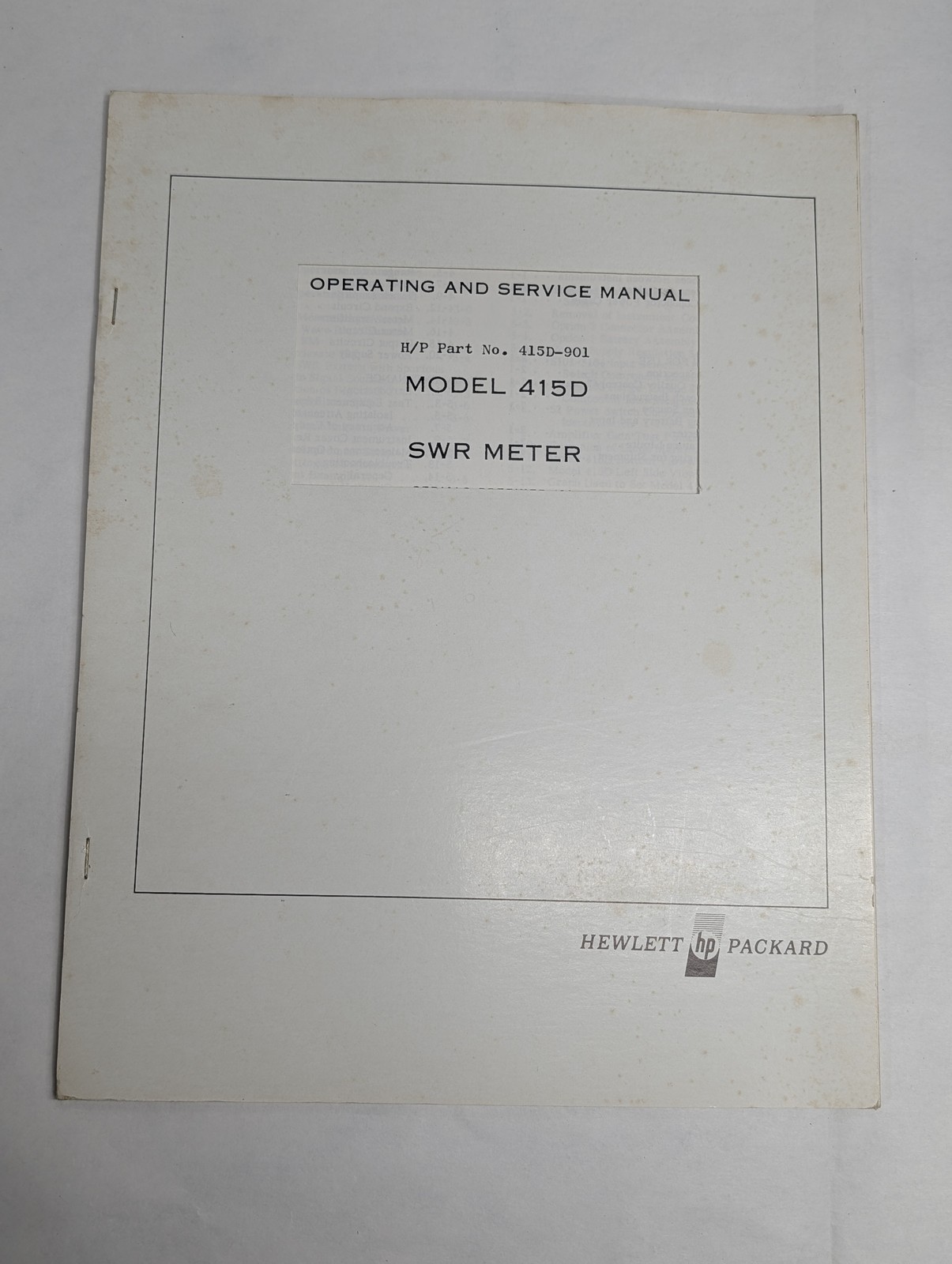 Hewlett Packard Hp Operating Service Manual Model 415D Swr Meter 1967 415D-901