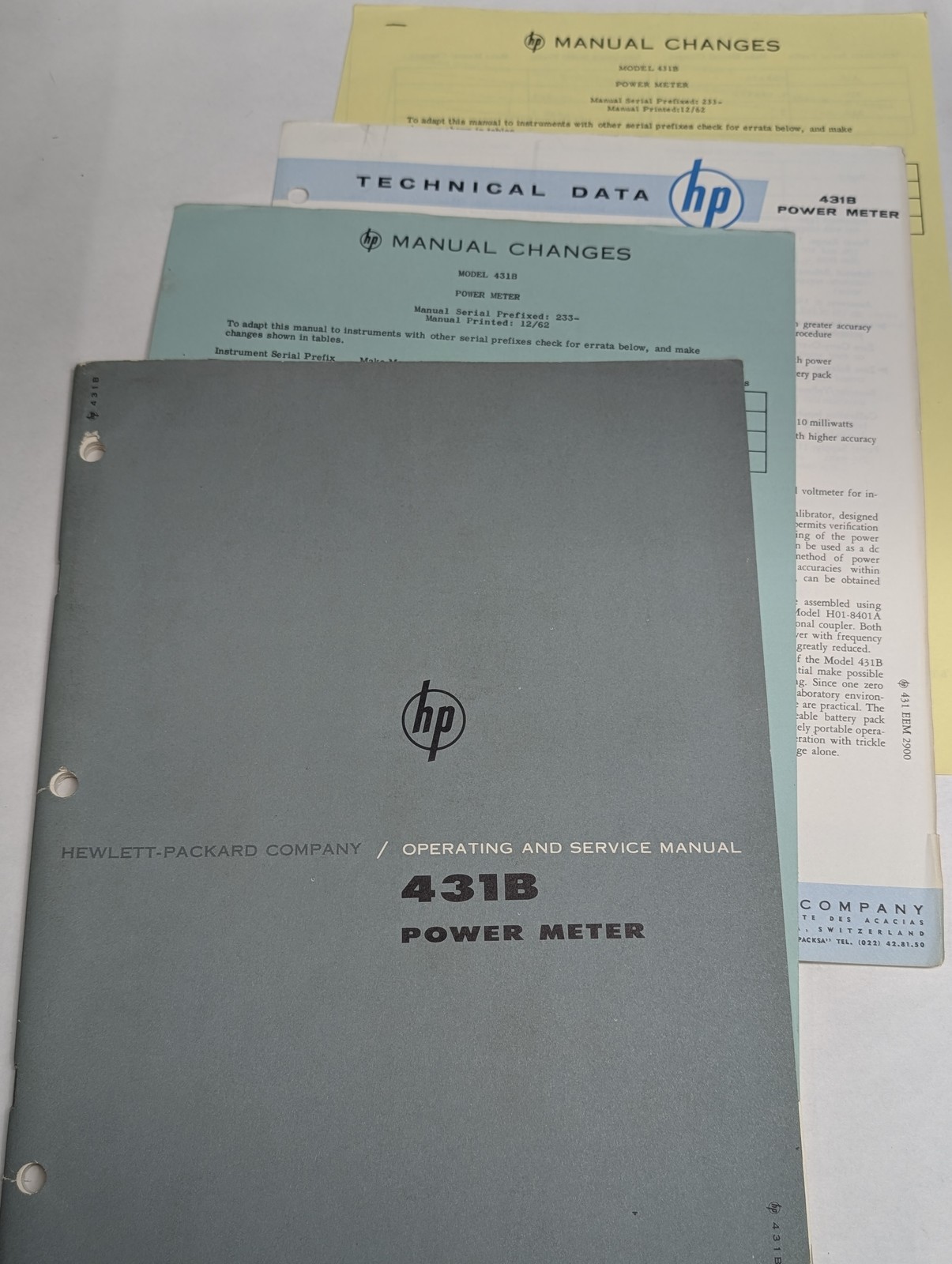 Hewlett Packard Hp Operating & Service Manual Model 431B Power Meter 1962