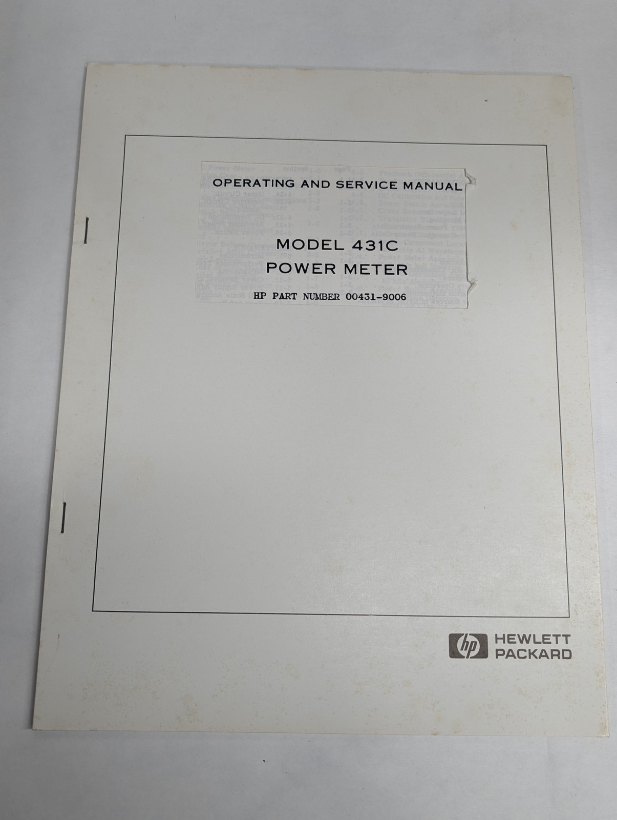 Hewlett Packard Hp Operating & Service Manual Model 431C Power Meter 1966