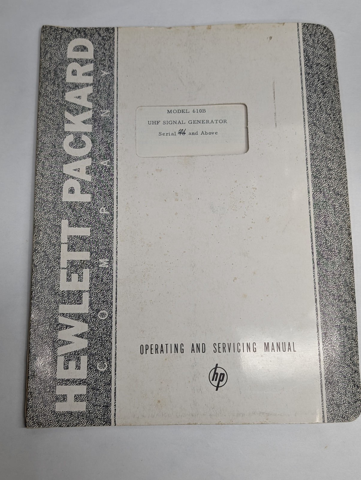 Hewlett Packard Hp Operating & Service Manual Model 610B Ufh Signal Generator
