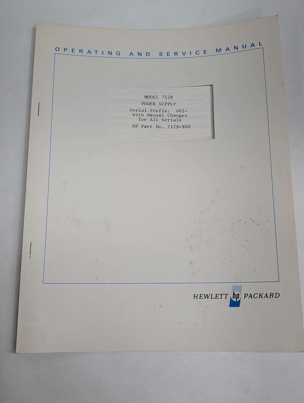 Hewlett Packard Hp Operating & Service Manual Model 712B Power Supply 002-
