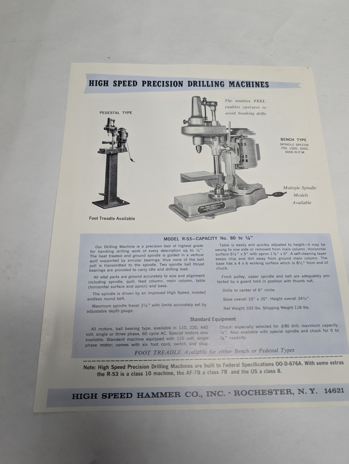 High Speed Hammer Company Precision Drilling Machines R-53 Af-7B Us Sales Sheet