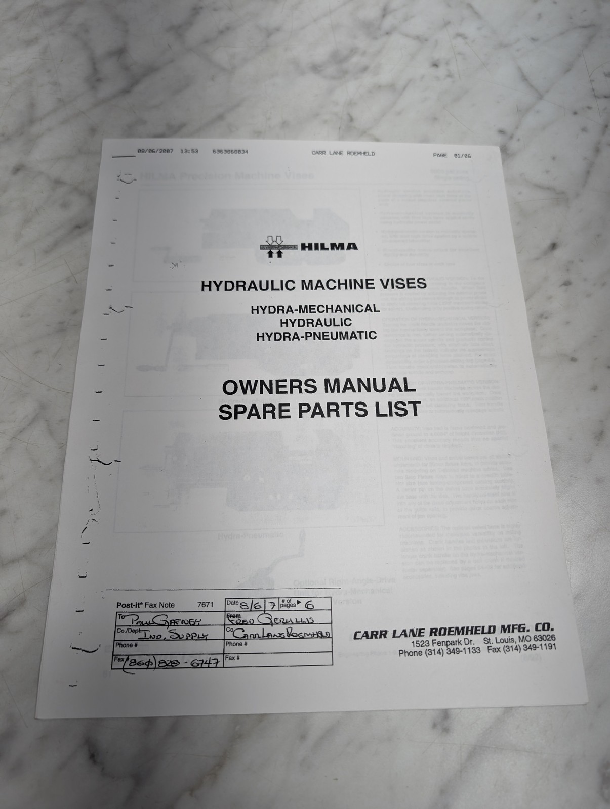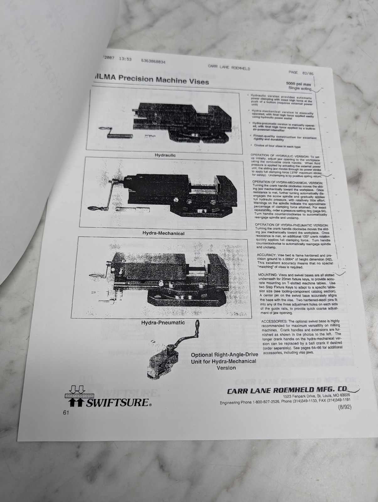 Hilma Hydraulic Machine Vises Hydra Mechanical Pneumatic Owners Operators Manual