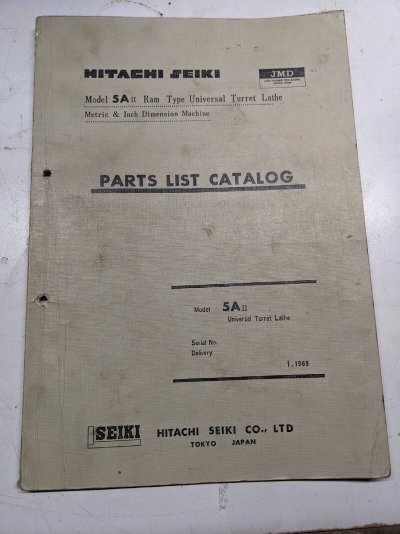 Hitachi Seiki Parts List Book Manual Catalog 5A Ii Turret Lathe 1969