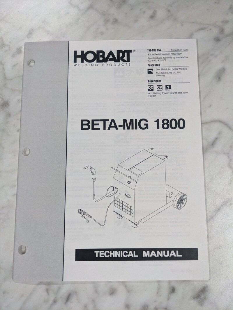 Hobart Welder Techinical Service Manual Part List Beta-Mig 1800 Tm-185 157 1998