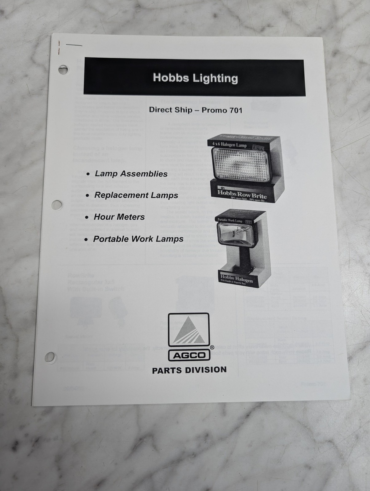 Hobbs Lighting Direct Ship Promo 701 Agco Parts Division Lamp Assemblies