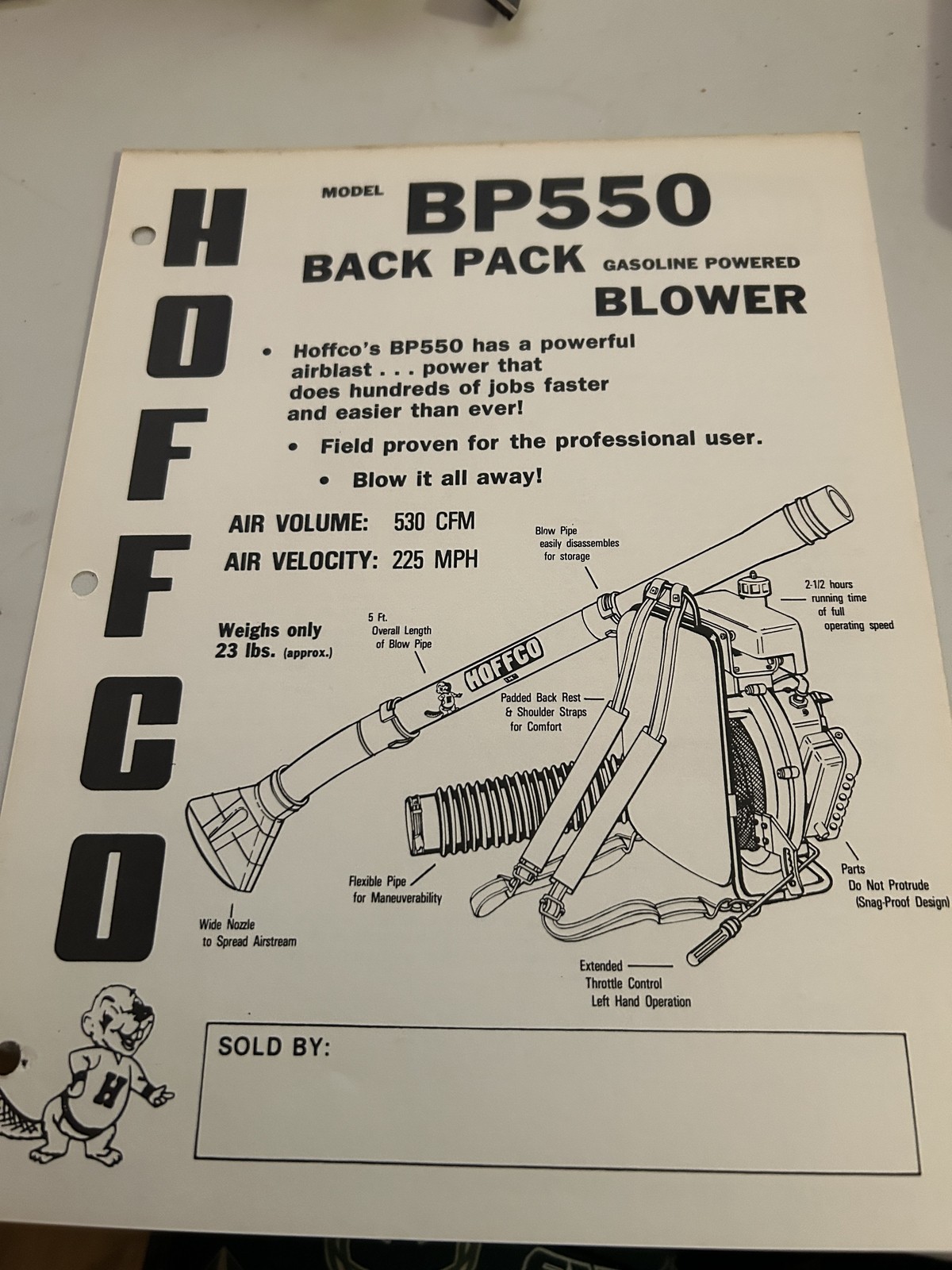Hoffco Bp550 Backpack Gasoline Powered Blower Sales Brochure 225Mph
