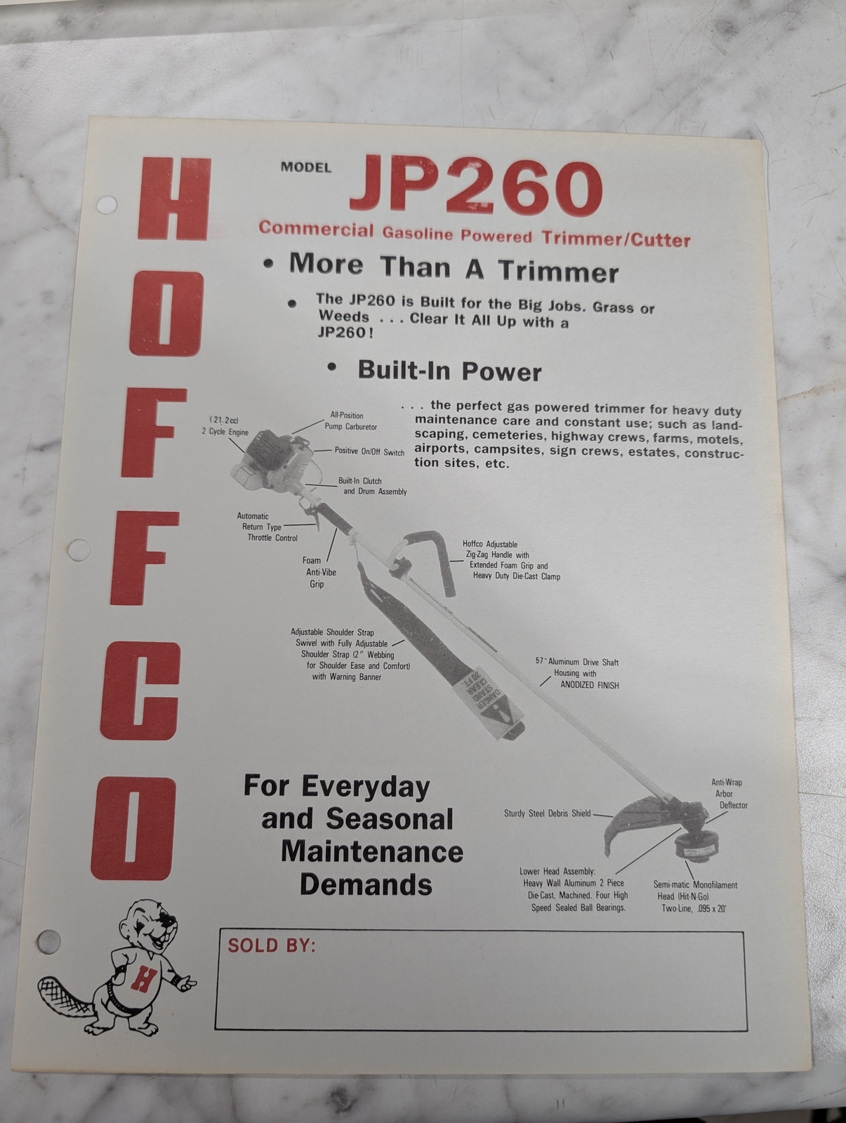 Hoffco Jp260 Gasoline Powered Grass Trimmer Sales Brochure Information Sheet