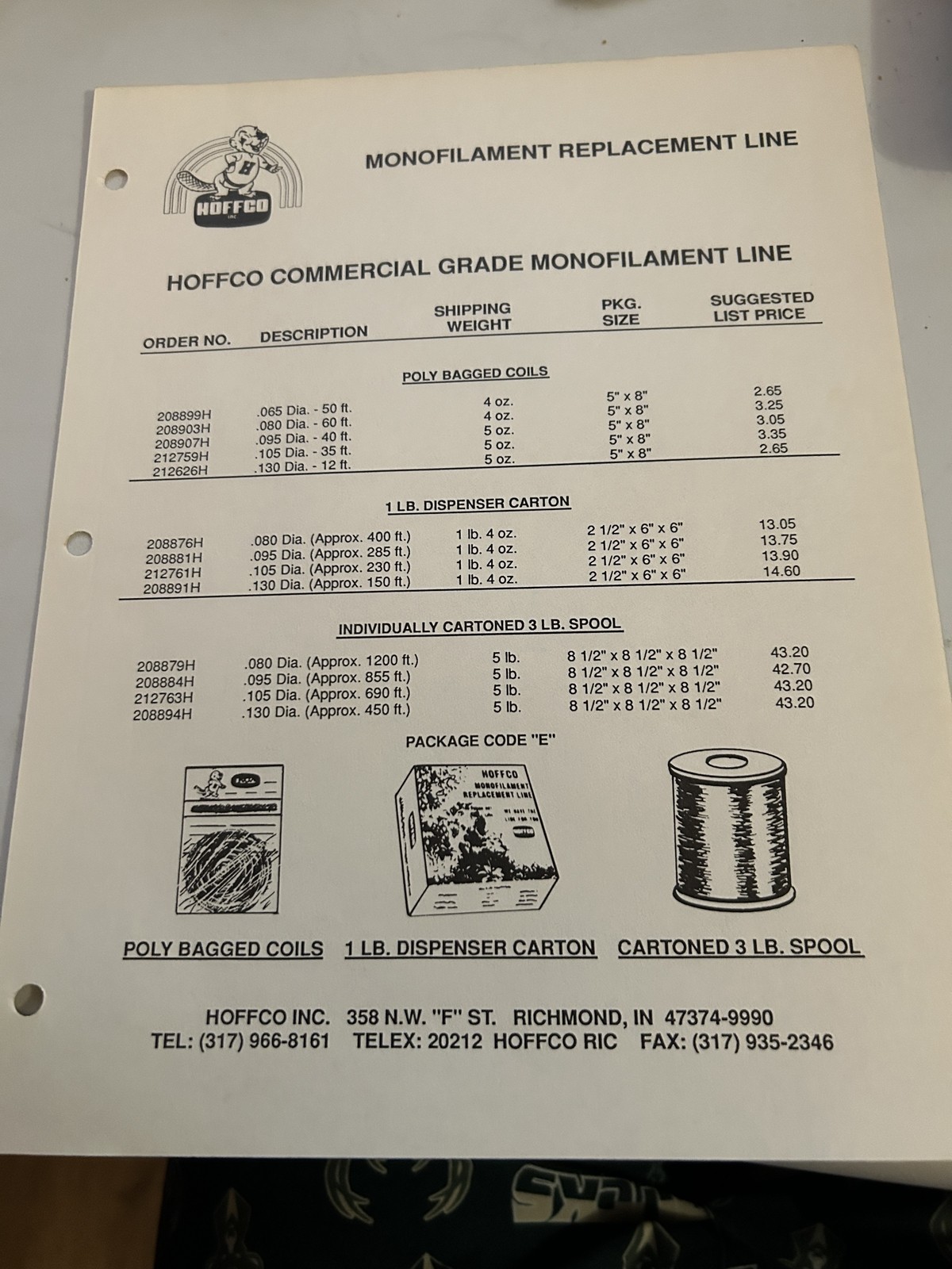 Hoffco Monofiliment Replacement Line Sales Brochure 1Lb 3Lb Polybag