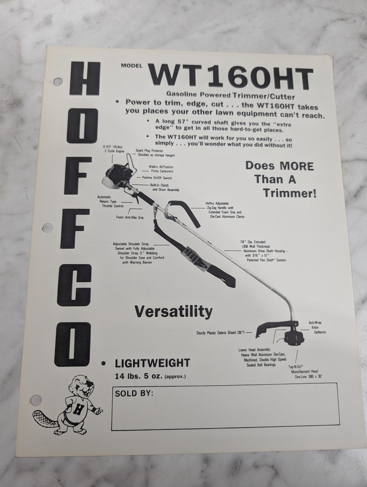 Hoffco Wt160Ht Gasoline Powered Grass Trimmer Sales Brochure Information Sheet