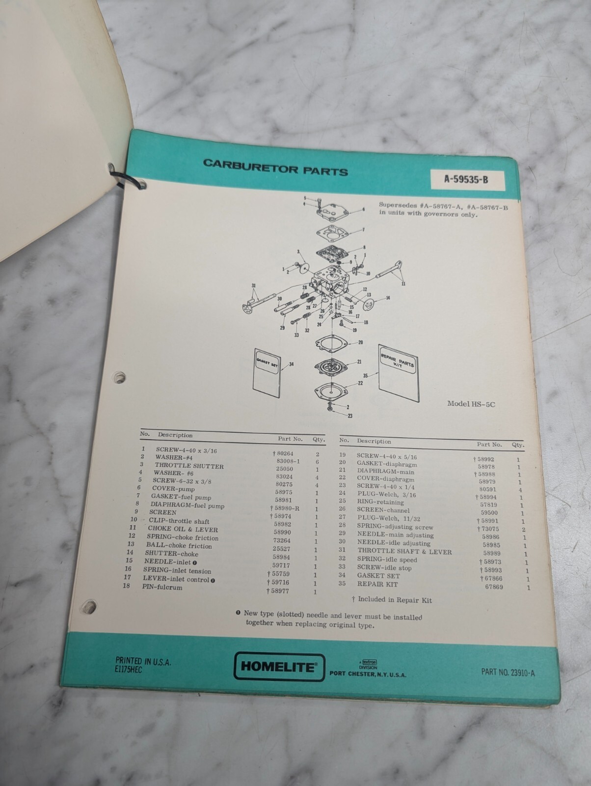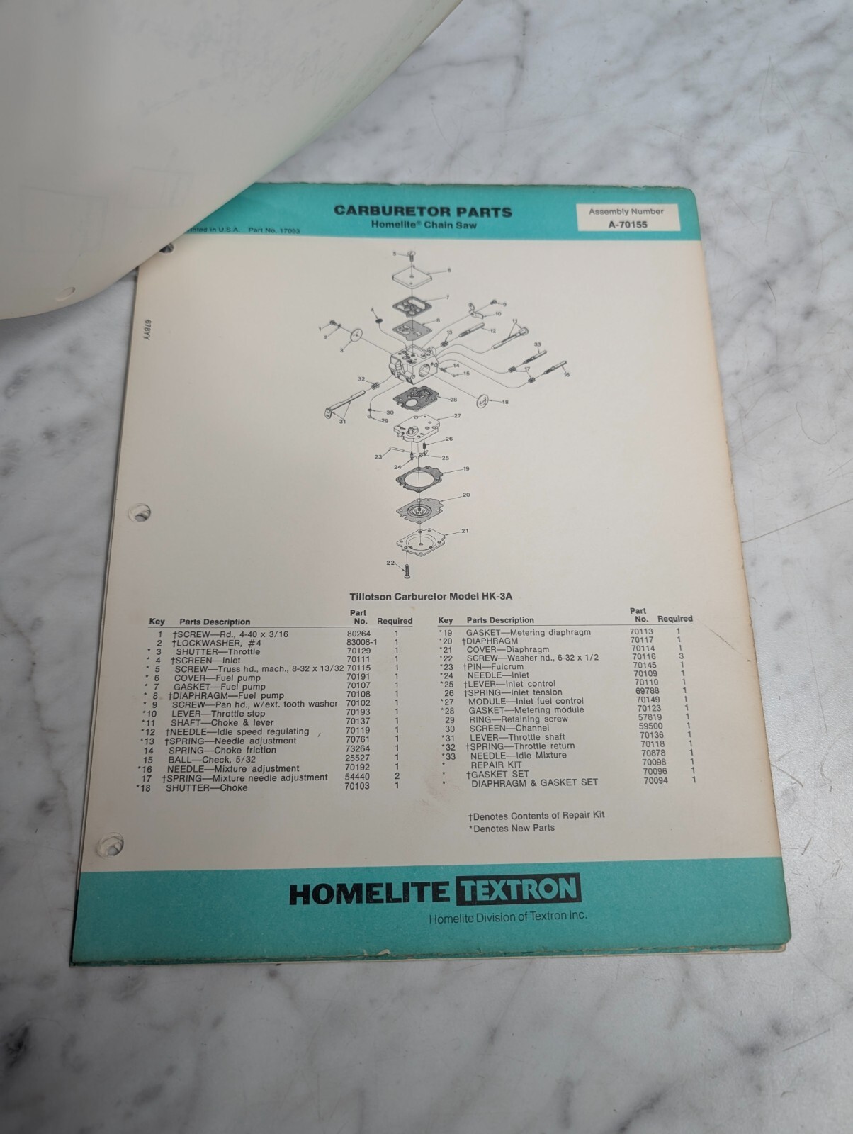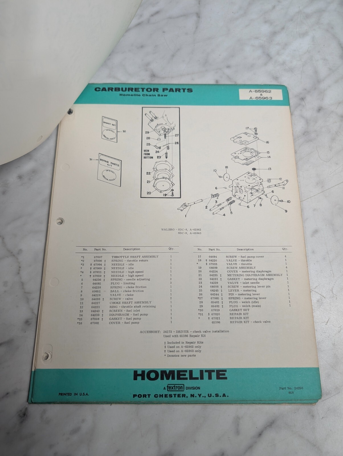 Homelite Chain Saw Carburetor Illustrated Parts List Manuals Pages Lot~