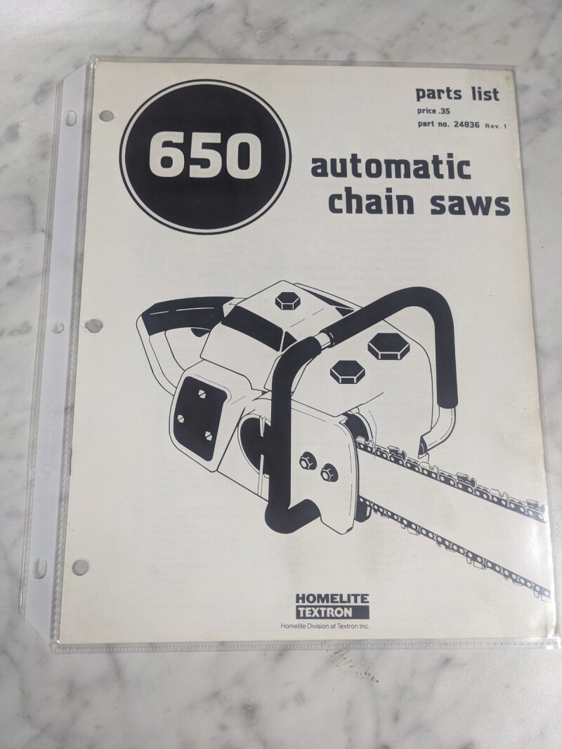 Homelite Chain Saws Illustrated Service Parts List Manual Model 650 24836 R1