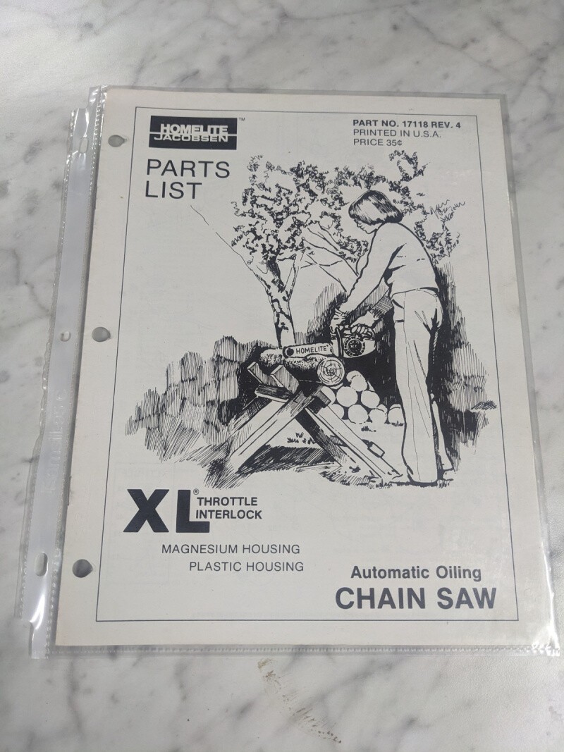 Homelite Chain Saws Illustrated Service Parts List Manual Model Xl 17118 Rev 4