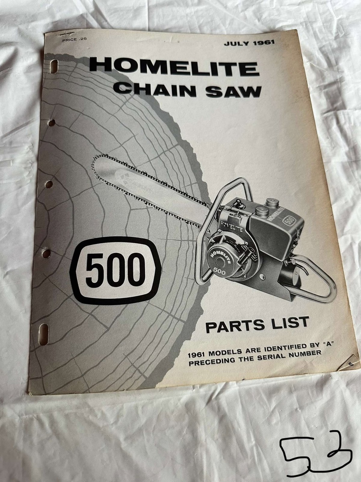 Homelite Chainsaw 500 Parts List #23483A July 1961 Assembly Sales Manual