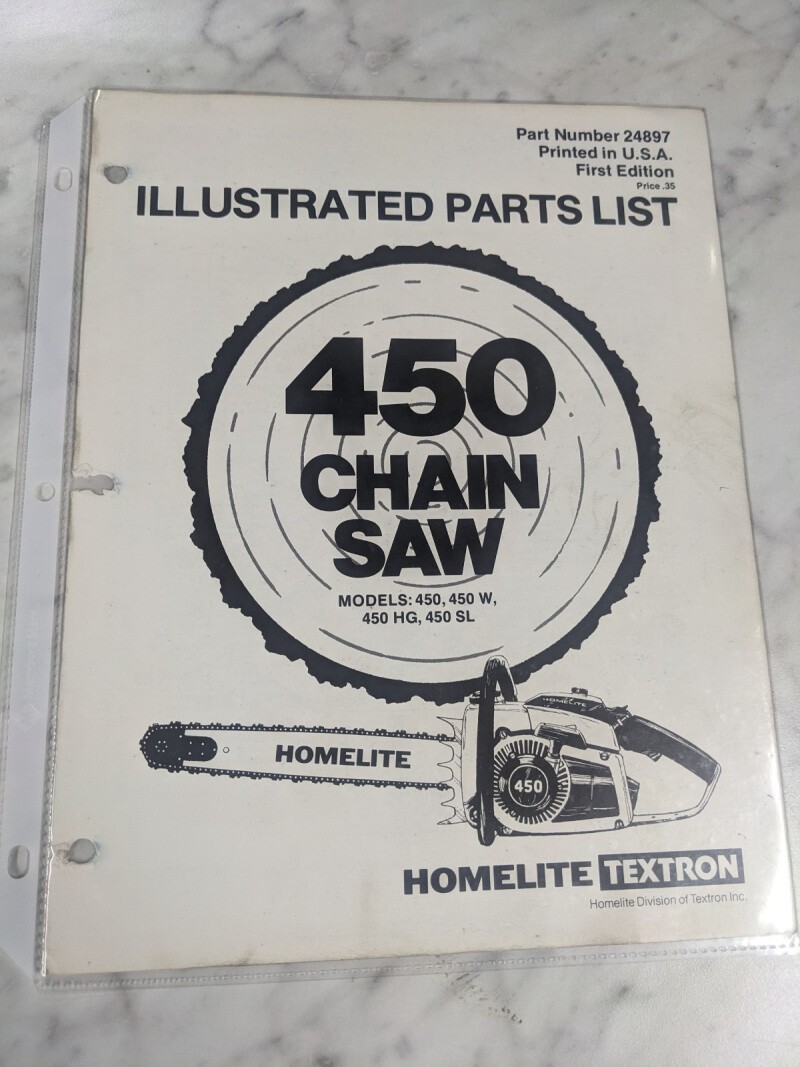 Homelite Chainsaws Illustrated Service Parts List Manual Model 450 W Hg Sl 24897