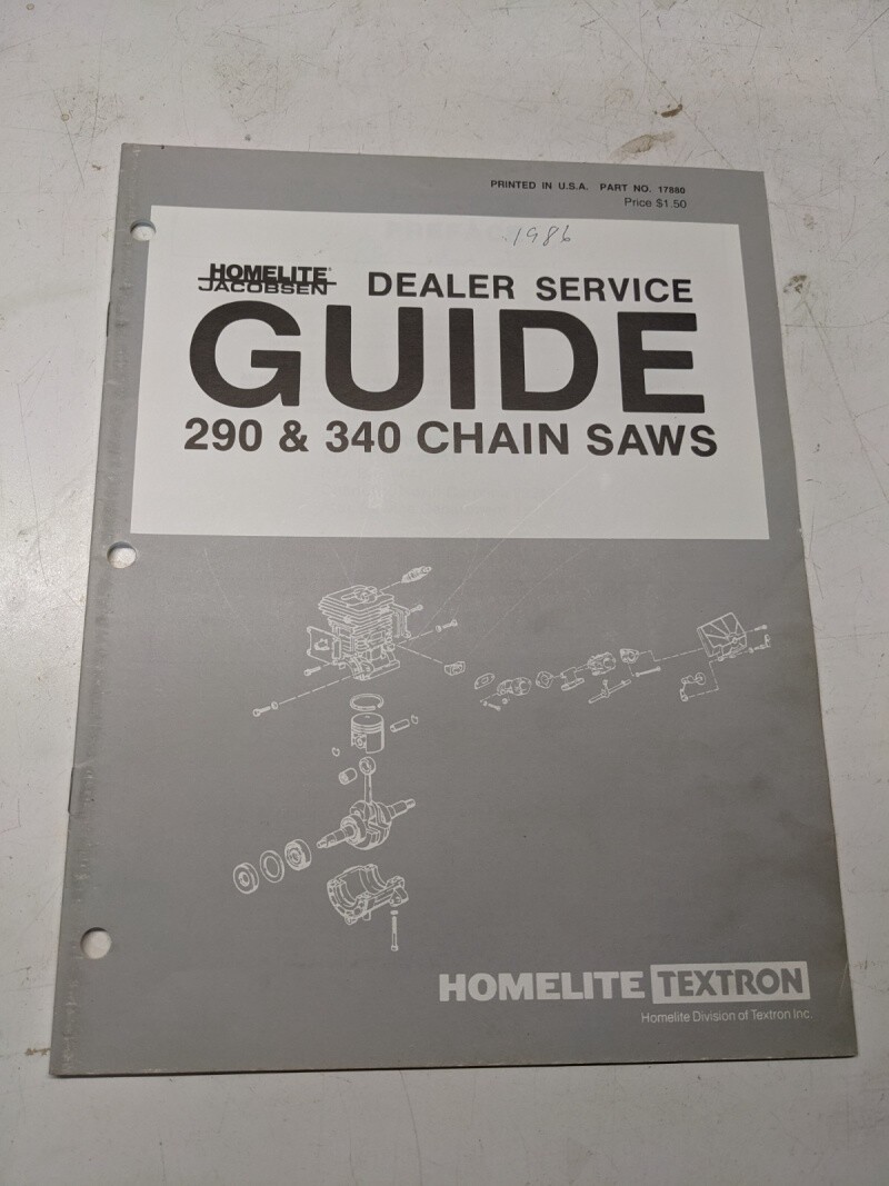 Homelite Dealer Service Guide Jacobsen 290 340 Chain Saws Repair Overhaul 17880