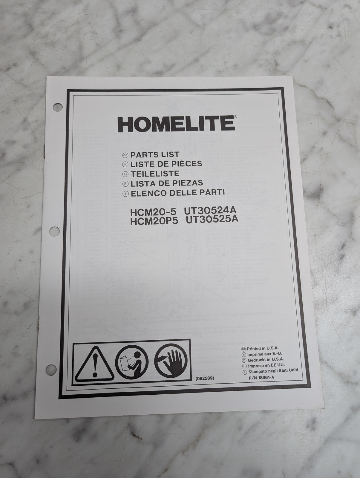 Homelite Hcm20 5 Hcm20P5 Ut30524A Ut30525A P N 18961 A Parts List Manual
