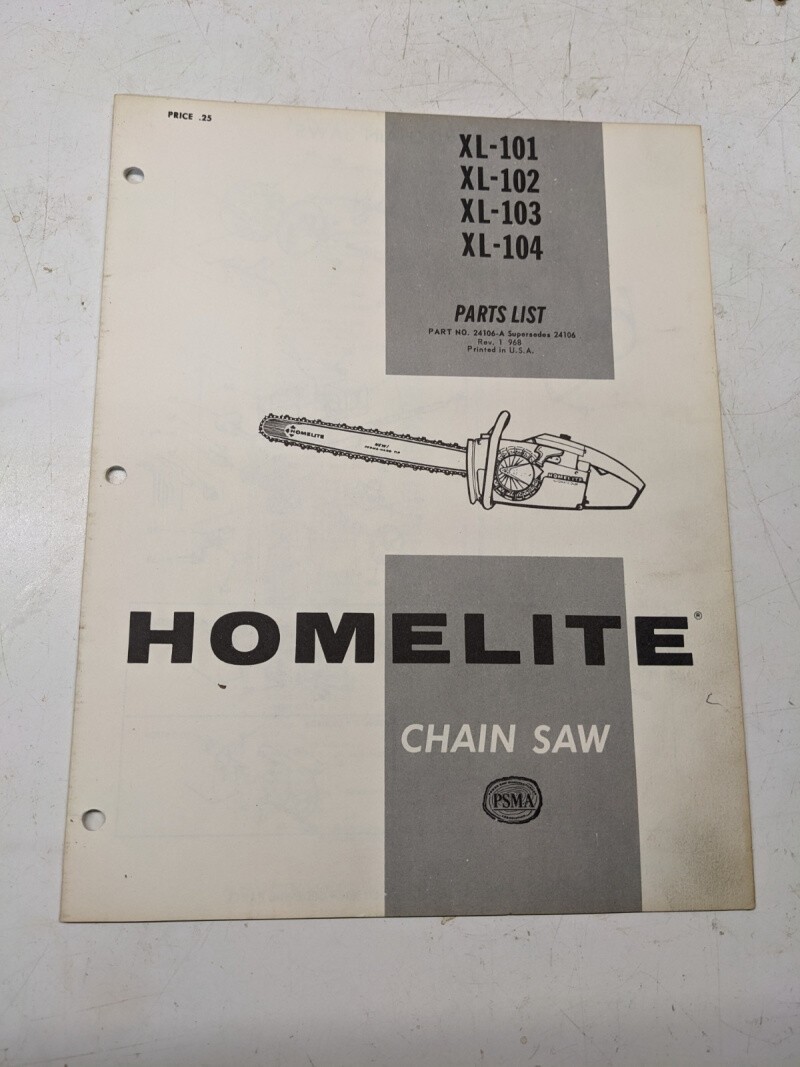Homelite Illustrated Part List Book Manual Chain Saws Xl-101 102 103 104 24106-A