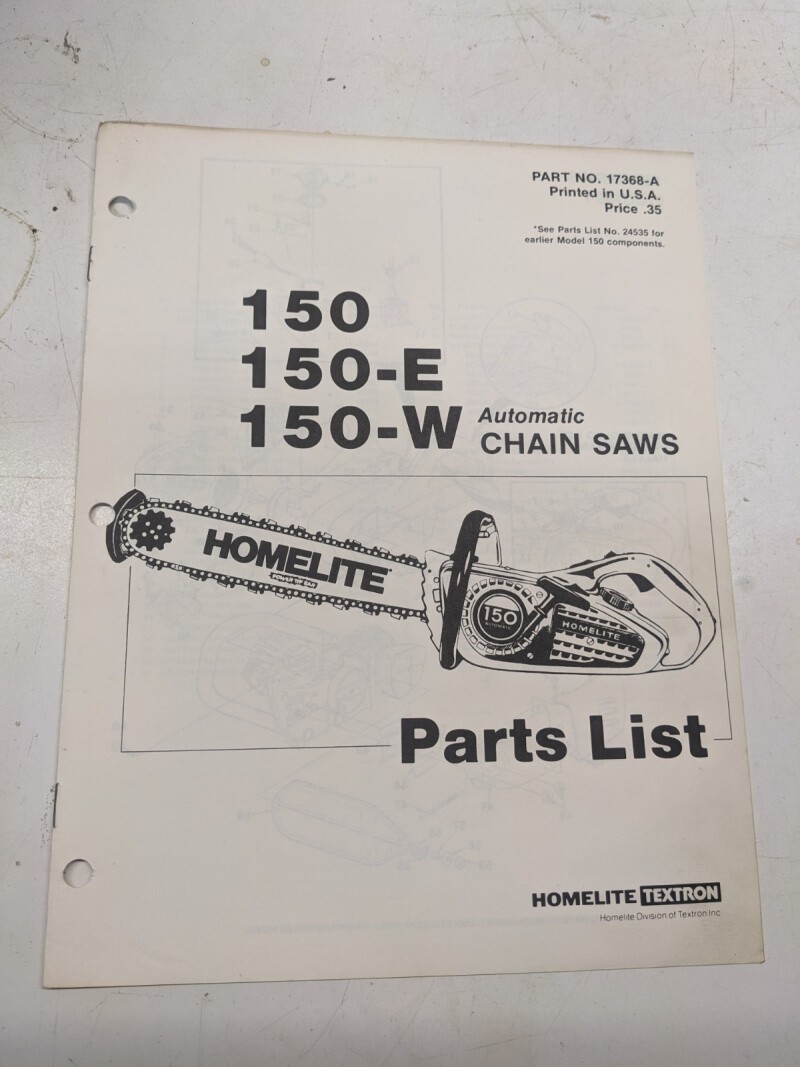 Homelite Illustrated Parts Book List Manual Chain Saws 150 W E 17368-A Automatic