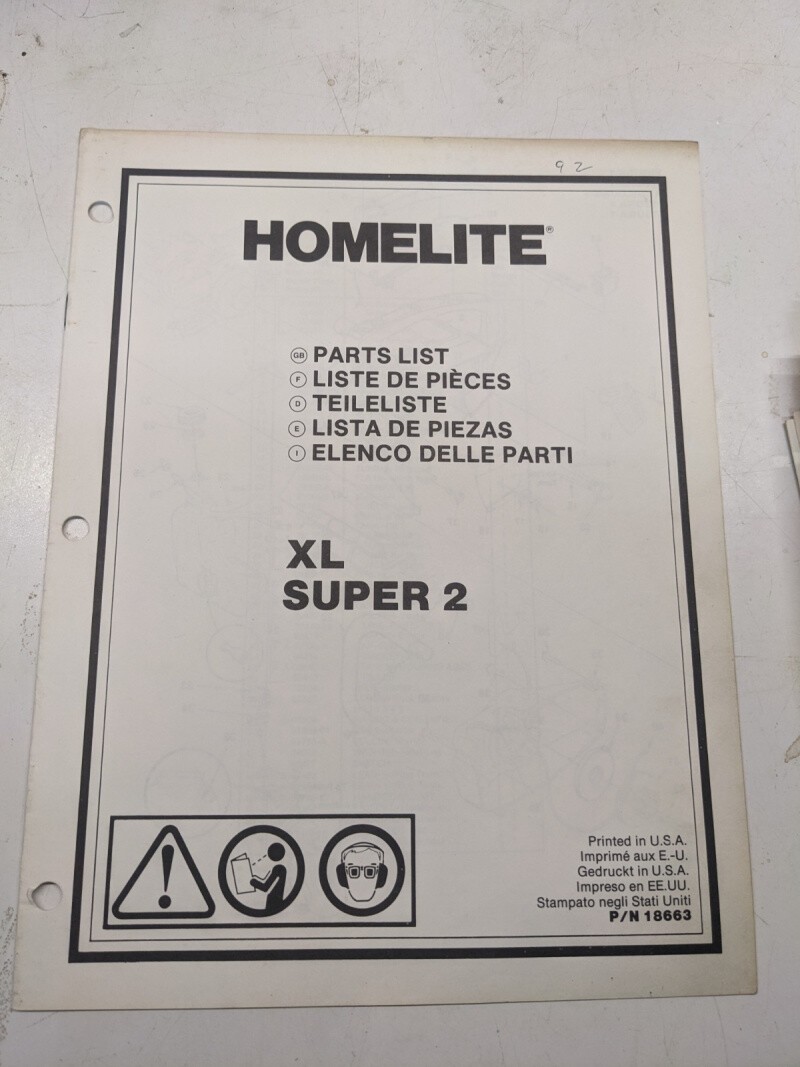 Homelite Illustrated Parts Book List Manual Chain Saws Xl Super 2 18663