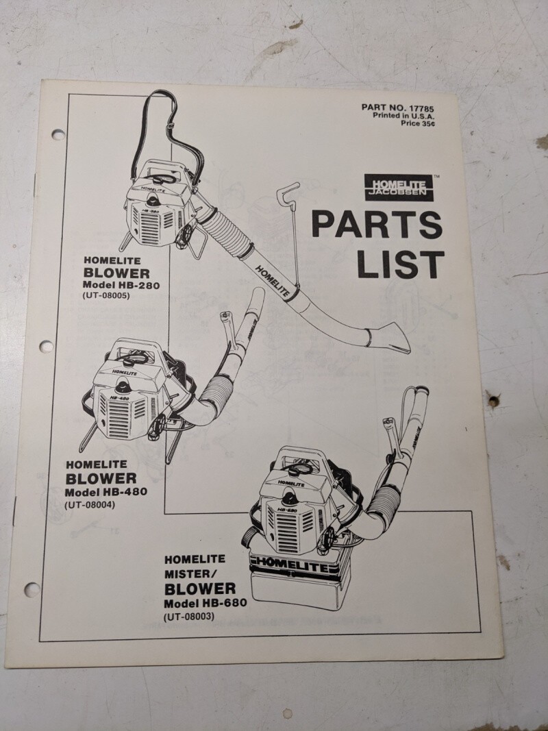 Homelite Illustrated Parts Catalog List Book Manual Blower 17785 Hb-680 280 480
