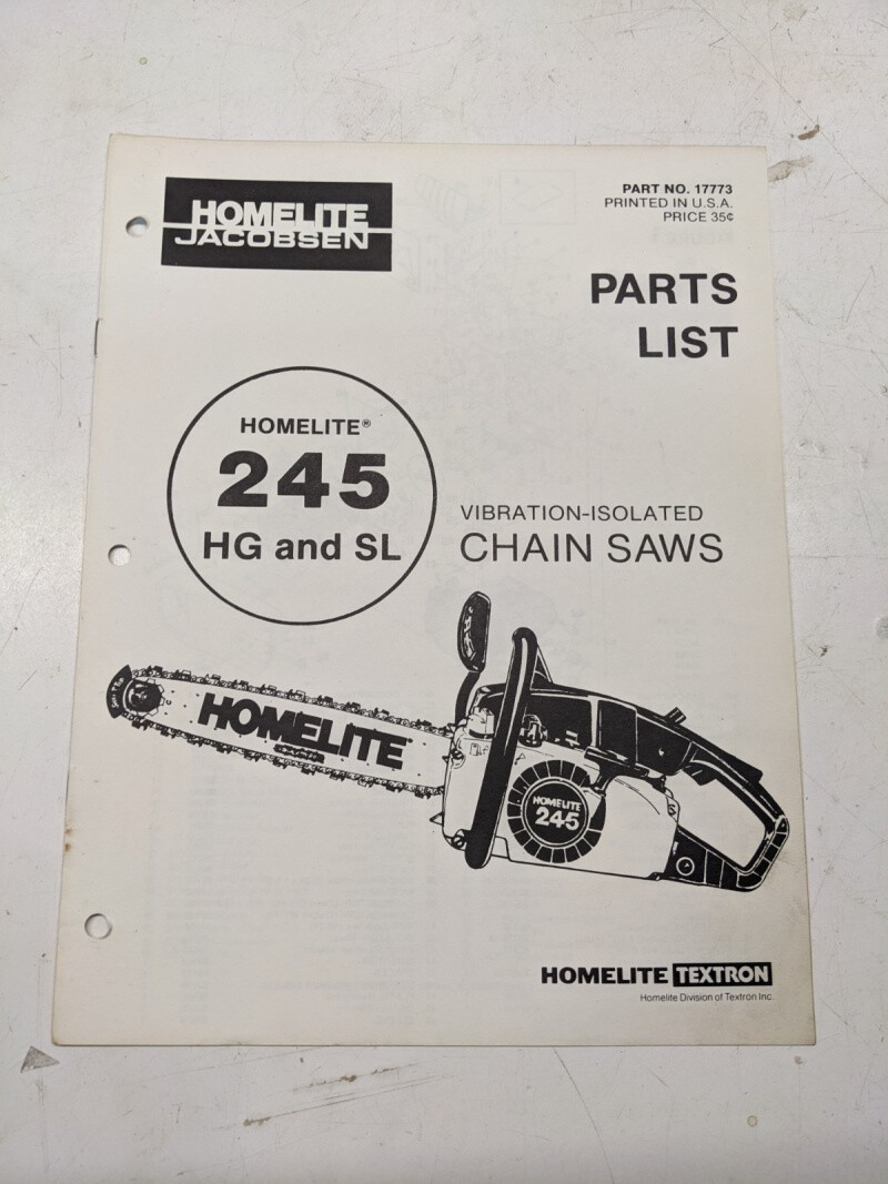 Homelite Illustrated Parts Catalog List Book Manual Chain Saws 245 Hg Sl 17773