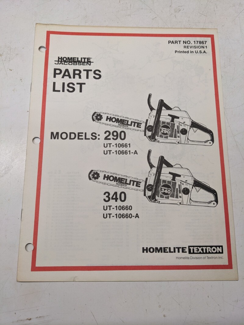 Homelite Illustrated Parts Catalog List Book Manual Chain Saws 290 340 17867