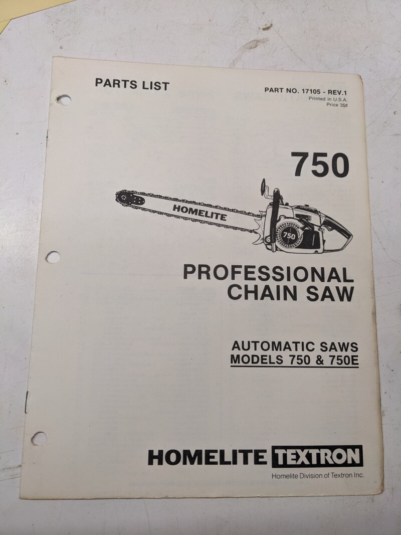 Homelite Illustrated Parts Catalog List Book Manual Chain Saws 750 E Pro 17105 1