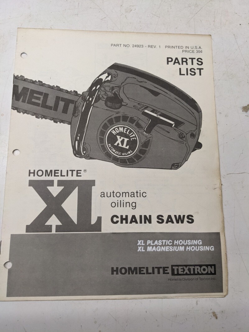 Homelite Illustrated Parts Catalog List Book Manual Chain Saws Xl 24923 Rev 1