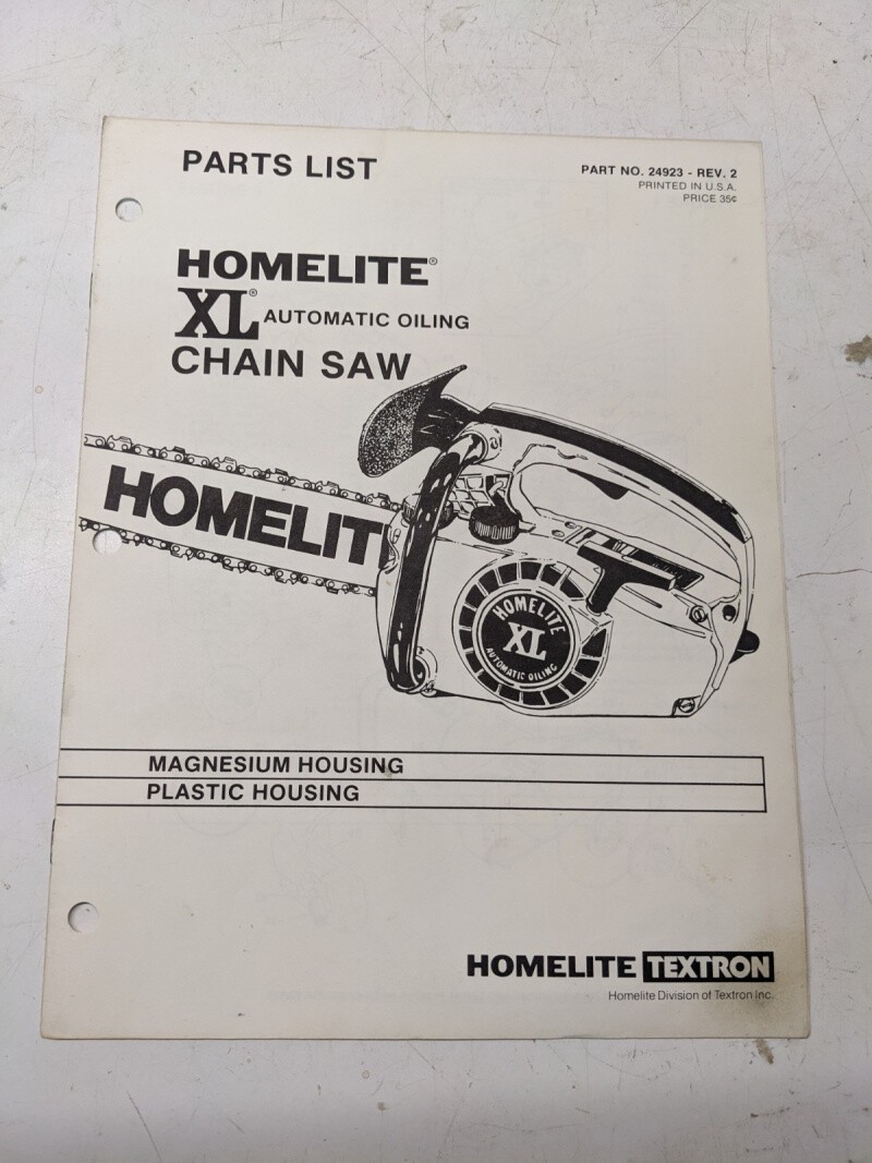 Homelite Illustrated Parts Catalog List Book Manual Chain Saws Xl 24923 Rev 2