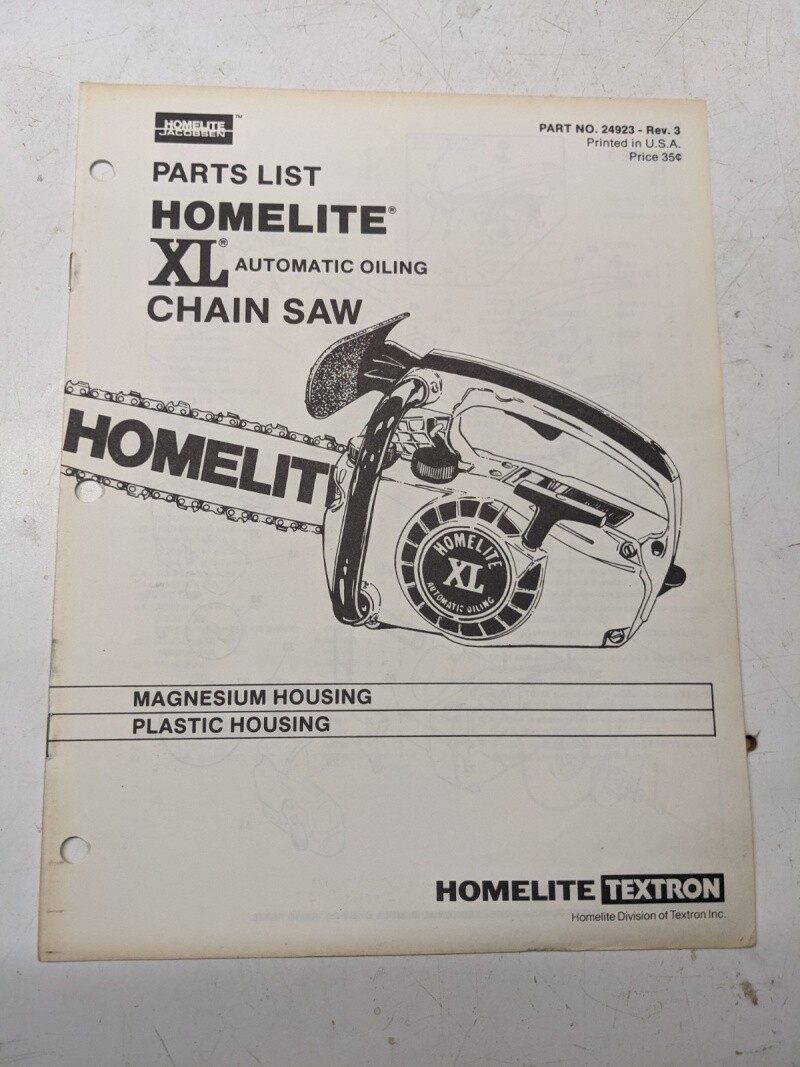 Homelite Illustrated Parts Catalog List Book Manual Chain Saws Xl 24923 Rev 3